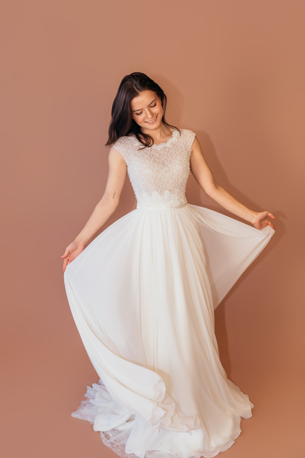 Jedes Brautkleid bei Atelier Katalin wird individuell entworfen und in sorgfältiger Handarbeit im Atelier gefertigt.